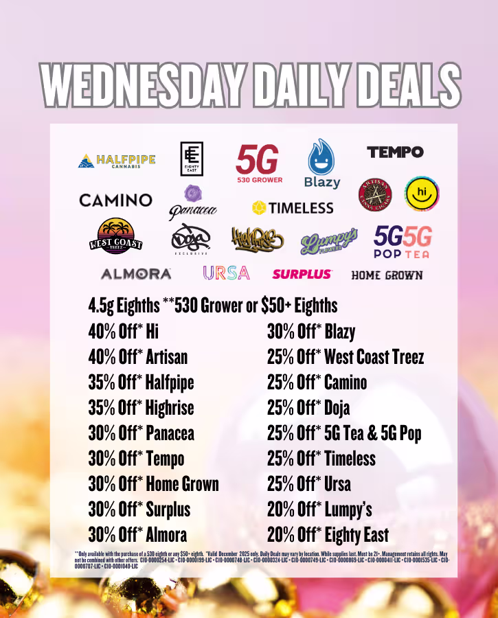 4.5g Eighths** 530 Grower (5G) or $50+ Eighths