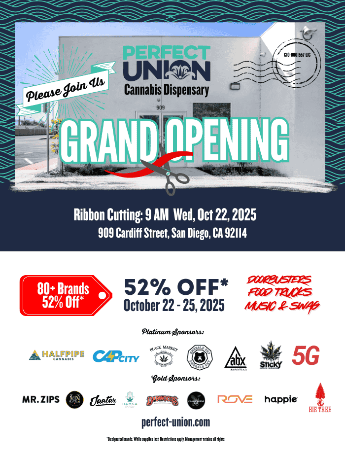 Click here to sign up for our Perfect Union Discord channel to receive push notifications and messages about sales, brand in-store events, pop-up promotions, fresh drops and exclusive cannabis community conversations with growers and brands.
